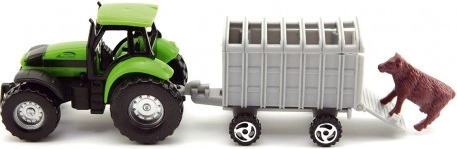 Plastikmodel af traktoren med anhænger er det ideelle legetøj for alle små landmænd. Denne detaljerede replika tilbyder muligheder for realistisk leg og udvikling af børns fantasi.