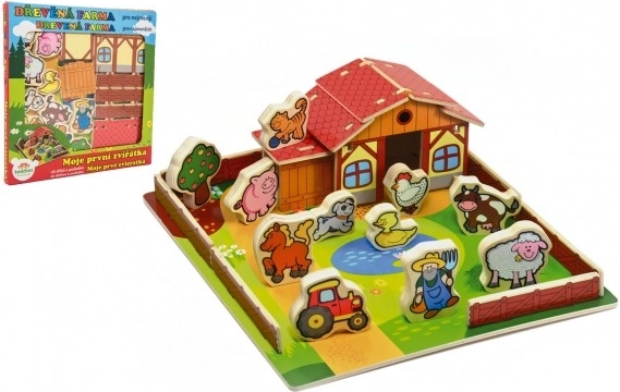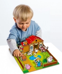 Denne træfarm er ideel til små børn fra 3 år. På en træbase med målene 31 x 31 cm kan gården nemt samles, hvilket skaber et perfekt legehus fyldt med dyr. Den består af 28 stykker, der tilbyder uendelige muligheder for fantasifuld leg.