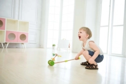 De farverige elementer og behagelige lyde understøtter børns motorik og koordination.