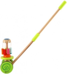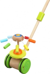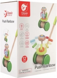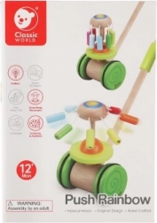 Den farverige træ-skubbewogn Classic World er det ideelle legetøj til små opdagelsesrejsende, der lærer at gå. Vognen er udstyret med en farverig karrusel, som drejer rundt og udsender behagelige lyde, der fanger barnets opmærksomhed og støtter deres gang.