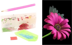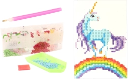 I pakken finder du alt, hvad du behøver for at skabe: applikator (pen), vokspude til nem optagning af sten, bakke til sortering og poser med farvede sten. Sættet er egnet til børn fra 5 år og understøtter tålmodighed, finmotorik og koncentration.