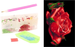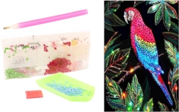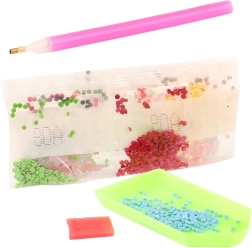 Diamantmaling er en sjov og beroligende teknik, hvor du med en applikator overfører små “diamanter” til et selvklæbende lærred efter en fortrykt kode. Stenene er sorteret i poser efter bogstaver og symboler, så du præcist ved, hvor hver lille del hører til. Resultatet er et glitrende billede på 10 × 15 cm, som pynter i dit værelse eller fungerer som en kær gave.