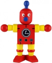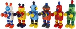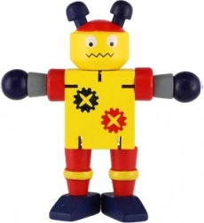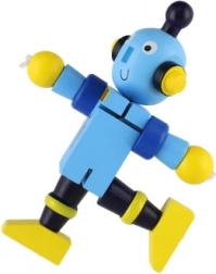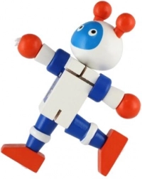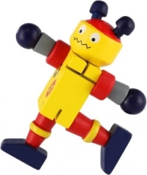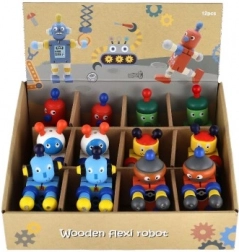 Disse farverige trærobotter er ideelle til de første bygge- og rollelege. Takket være gummibåndssamlingerne bøjer de nemt, holder positurer og inviterer børn til kreativ historiefortælling. Det robuste træ og de glatte kanter sikrer sikker og behagelig håndtering selv for de mindste.