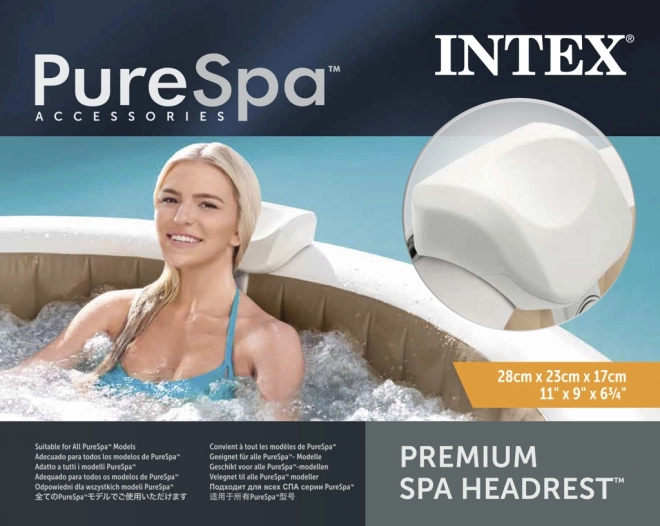 Forkæl dig selv med endnu mere komfort i spabadet med denne skum-hovedstøttepude fra INTEX. Den universelle størrelse passer til alle INTEX-spabade, blød polyurethanskum tilpasser sig hovedets form, og den ergonomiske form giver sikker støtte til nakken. Takket være det vandtætte materiale er den ideel i fugtige omgivelser, og nem montering og afmontering gør det muligt at placere den hvor som helst på spaens kant.
