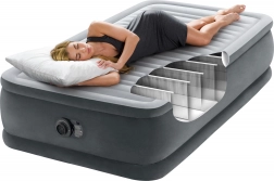 Den oppustelige seng Intex Deluxe er et fremragende valg til gæster, udlejning og ferie. Den forhøjede konstruktion på 46 cm gør det lettere at rejse sig, og den bløde, flokkede overflade giver en behagelig følelse og holder lagnet på plads. Indvendige forstærkninger med Fiber-Tech af slidstærke polyesterfibre holder madrassen fast og formstabil, mens Dura-Beam-systemet fordeler vægten jævnt og understøtter korrekt justering af rygsøjlen.