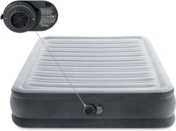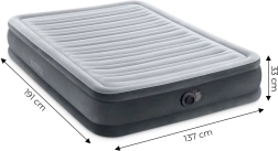 Den oppustelige madras fra INTEX er ideel som en komfortabel ekstra seng til gæster eller til camping. Den integrerede pumpe til 220–240 V sikrer hurtig oppumpning på ca. 4,5 minutter samt automatisk tømning uden besvær. Velouroverfladen er blød at røre ved, mens det robuste PVC giver lang levetid og nem vedligeholdelse.