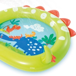 Sjov oppustelig pool med en springvand og dinosaurtema er ideel til sommer sjov i haven. Poolen er lavet af kvalitets PVC materiale med dimensionerne 119 x 109 x 66 cm.