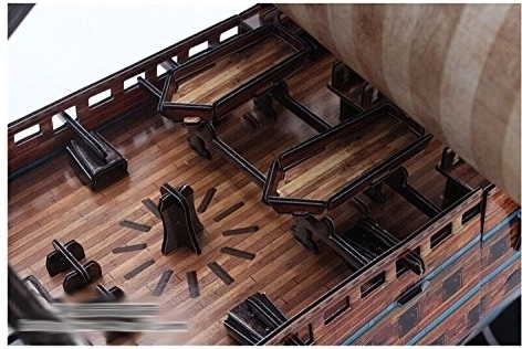Detaljerede dæk med bænke og borde fremhæver modellens håndværk og vil glæde enhver fan af skibsreplikker.