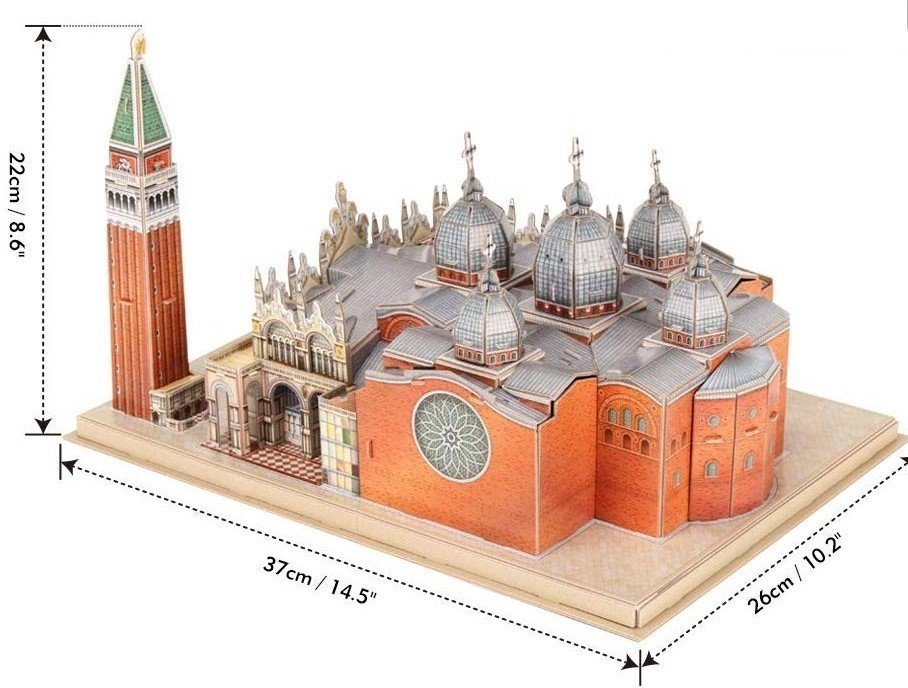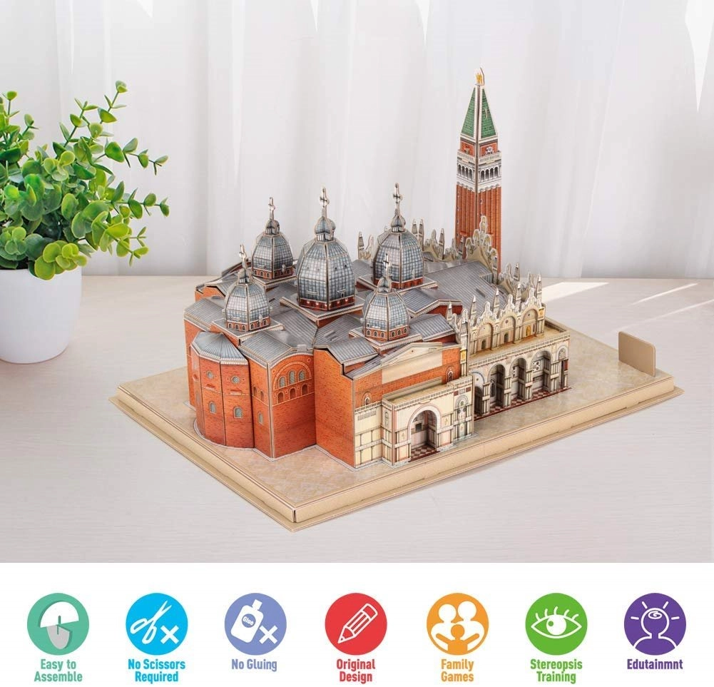 Oplev Venedigs magi med det detaljerede byggesæt af Markuspladsen. CUBICFUN 3D-puslespil fra National Geographic-udgaven er lavet af specialudviklet flerlags skum belagt med lamineret trykt papir, som sikrer smukke farver og lang holdbarhed. Delene er forskårne – du skal blot trykke dem ud og samle efter vejledningen.