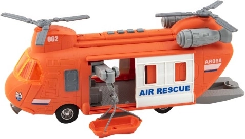 Redningshelikopter plast 28 cm med friløb, batteridrevet med lys og lyd i æske 32x19x12 cm