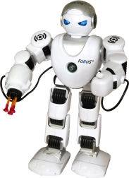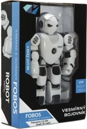 Rumrobotten FOBOS er en interaktiv ven, der taler tjekkisk, reagerer på fjernbetjening op til 30 m, kan programmeres med op til 50 trin, har 19 funktioner og 70 replikker. Den bevæger armene, går, drejer, affyrer 5 projektiler, og takket være USB-opladning er den hurtigt klar til aktion.