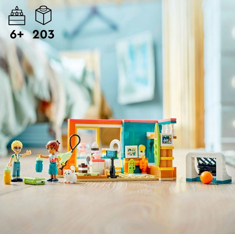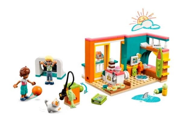 Tag på hav-eventyr med LEGO Friends Leos værelse og dyk ned i en verden af kreativitet og fantasi. Med hjælp fra vennen Olly, en ekspert i videooptagelse, og katten Churro kan børn skabe deres egne madblogs og opleve strandlivet direkte fra Leos velholdte værelse med en fantastisk havudsigt.