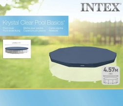 Beskyt din pool med Intex beskyttelsesovertræk! Dette overtræk er ideelt til rammebassiner med en diameter på 457 cm. Fremstillet af holdbar vinyl, giver det pålidelig beskyttelse mod snavs som blade og insekter og tilbyder desuden termisk isolering på køligere nætter.