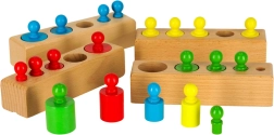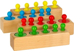 Dette træ-Montessori-puslespil med farverige cylindre er et ideelt redskab til alsidig udvikling af barnet. Hver farve repræsenterer en anden højde og bredde, hvilket understøtter logisk tænkning, sortering og sammenligning. Det enkle design og de naturlige materialer harmonerer perfekt med Montessori-filosofien.