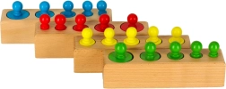 Under legen træner børn finmotorik, koncentration og de første matematiske færdigheder. Cylindrene kan også bruges som vægte til en skålvægt i butikslæg, så én legeting byder på mange anvendelsesmuligheder og endeløs underholdning.
