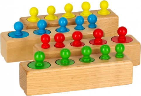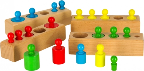 Opdag et kreativt Montessori-puslespil med farvede træcylindre, der udvikler barnets fantasi, logik og finmotorik. Takket være forskellige højder og diametre på cylindrene øver børn genkendelse af former, farvelære og de første regnefærdigheder. Den sikre udførelse i kvalitets træ og ikke-giftige farver garanterer sikker leg selv for de mindste. Et fremragende valg til Montessori-læring derhjemme og i børnehaven.