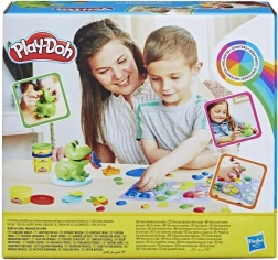 Træd ind i kreativitetens verden med sættet Play-Doh Starters Frø – læring af farver. Børn kan presse frøens lange, sjove tunge ud, lave sommerfugle, snegle og fluer med forme og lære at sortere efter farver på den medfølgende måtte. Sættet indeholder 4 bøtter Play-Doh modellervoks og sikre værktøjer til små hænder.