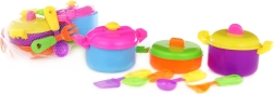 Dette farverige sæt giver børn alt, hvad de behøver for at udforske madlavningens verden. Takket være realistiske former og størrelser understøtter det rolleleg, finmotorik og kreativitet. Alt er opbevaret i et let net, som gør det nemt at bære og opbevare.