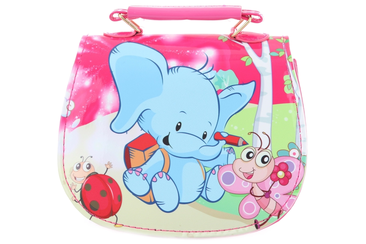 Leder du efter et praktisk og samtidig legende tilbehør til små piger? Denne rosa taske med elefant imponerer med et muntert motiv og en kompakt størrelse, der passer perfekt til hverdagsbrug. Børn kan lægge deres skatte, lommetørklæder eller små legetøj i den, og takket være den lette konstruktion kan de bære den uden besvær.