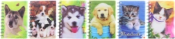 Praktisk notesbog med plastisk 3D‑motiv af hunde og katte er ideel til skole- og arbejdsnoter samt personlige optegnelser. Takket være A6‑format og spiralbinding passer den nemt i tasken, og siderne vender let.