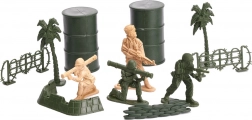 Indgår gør cirka 60 soldaterfigurer i forskellige positioner og rige komponenter til opbygning af en militærbase – tønder, hegn, forhindringer, palmer m.m. Figurerne er ca. 5 cm høje, står stabilt på flade overflader og er lette at placere.