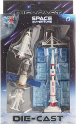Sættet indeholder en raket, en satellit, en astronautfigur, en kontrolstation og andre tematiske elementer, der tilsammen skaber et realistisk miljø. Praktiske mål gør det let at håndtere og opbevare.