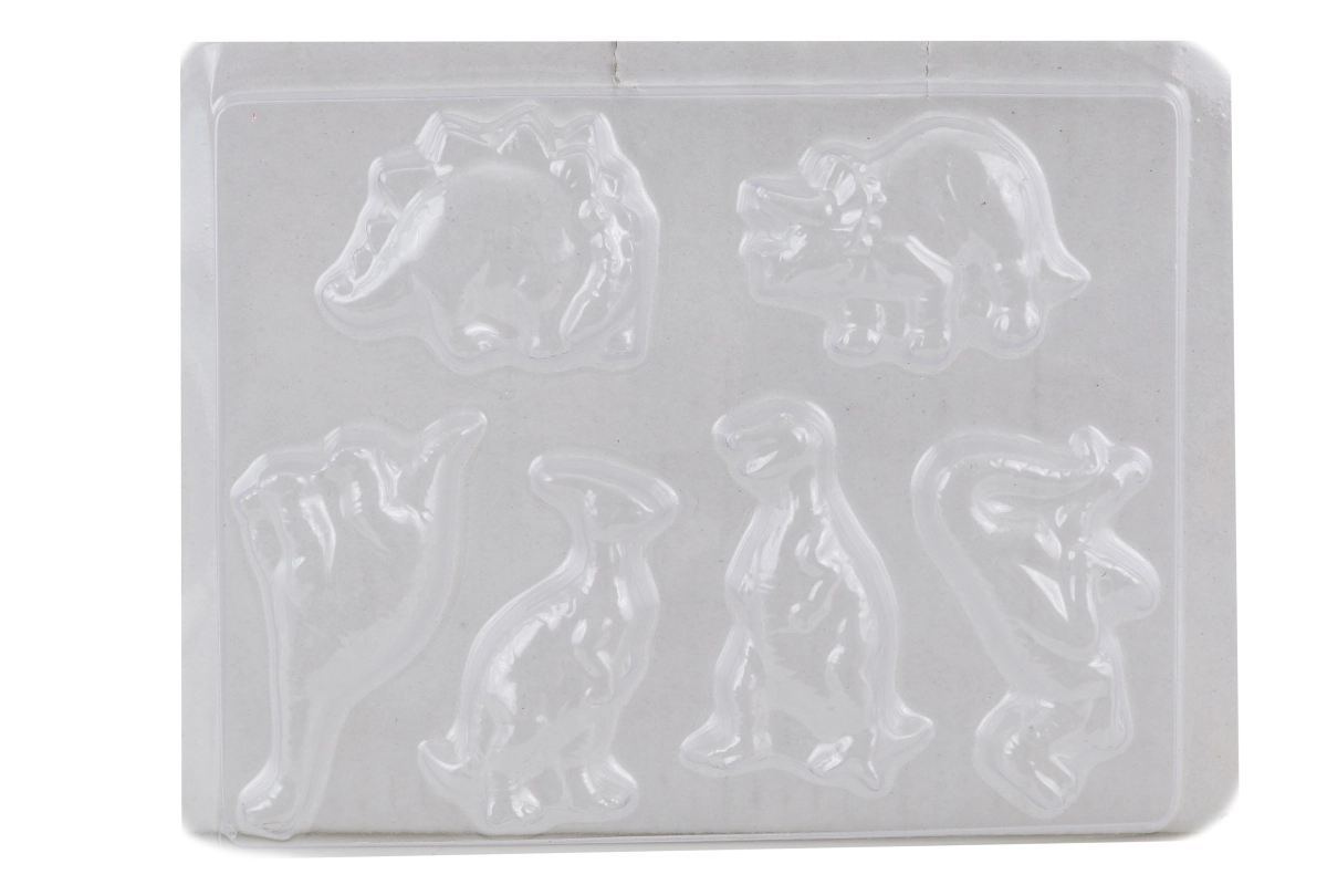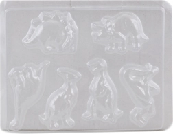 Formen med seks forskellige dinosaurmotiver sikrer varierede resultater. De færdige kreationer pynter på køleskabet eller magnettavlen.