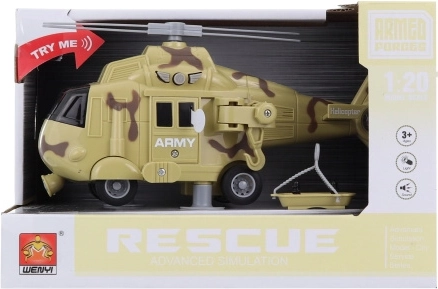 Ved tryk på en knap afgiver helikopteren lyde og lyser, hvilket i høj grad bidrager til en realistisk legeoplevelse. Denne understøttes også af de medfølgende batterier af typen AG13/LR44, som er inkluderet i pakken.