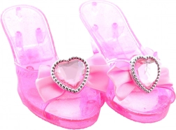Rosa sko med høj hæl samt dekorative hjerter og små sløjfer er ideelle til enhver lille prinsesse.