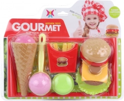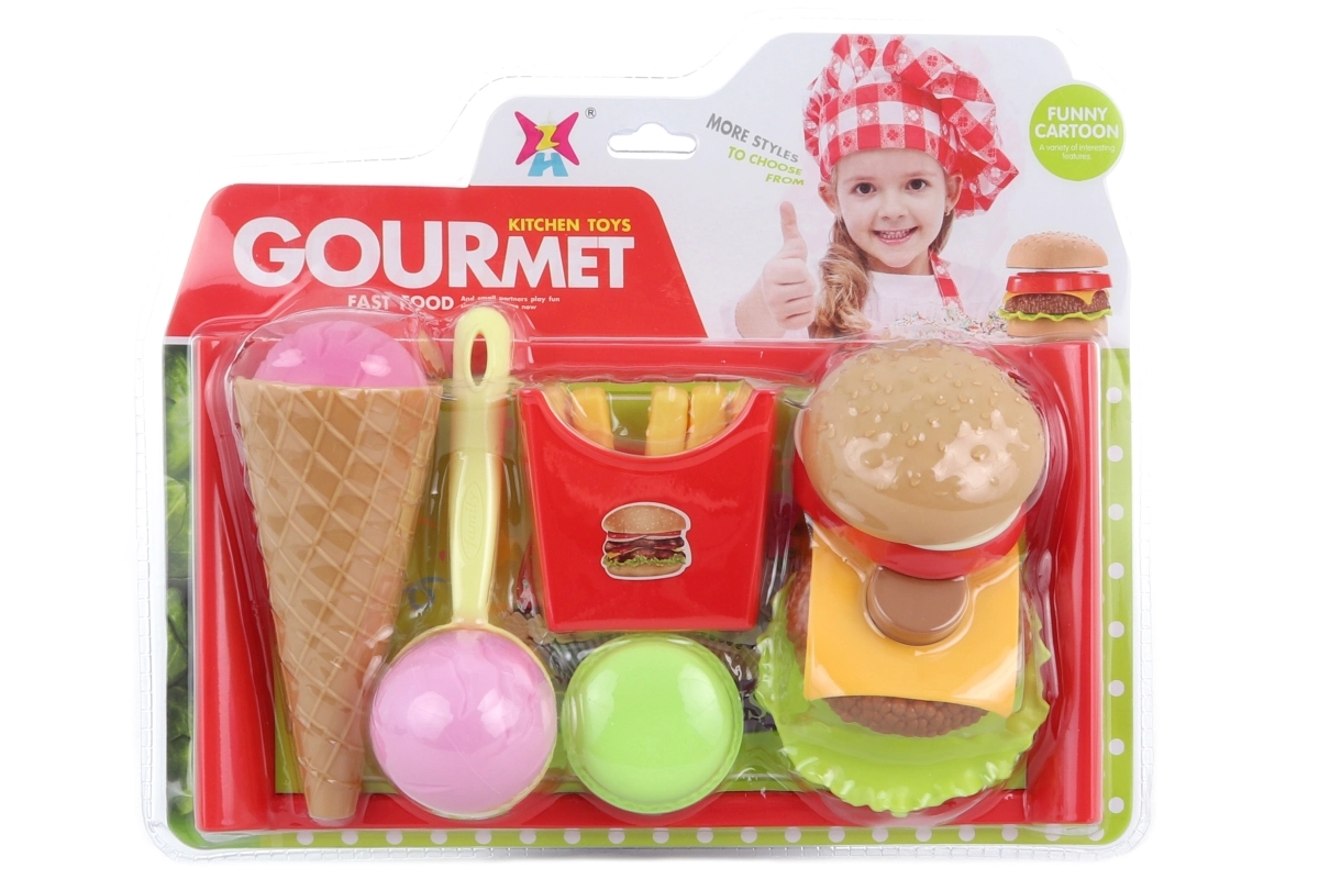 Dette farverige madlegesæt er et fantastisk tilbehør til børnekøkkenet. Børnene kan sammensætte en burger efter smag, øse is med skeen og servere det hele på den medfølgende bakke. Realistiske detaljer understøtter rolleleg som rigtig madlavning og servering.