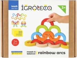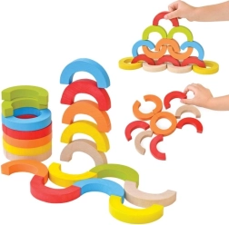 Regnbuebuer og halvcirkler kan stables til tårne, broer og balanceudfordringer. Børn udvikler koncentration, stabilitet og rumlig forståelse.