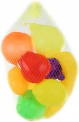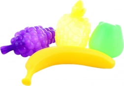Dette farverige frugtsæt omfatter favoritter som banan, æble, appelsin, vindruer og ananas. Hver del er lavet af let, holdbar plast med afrundede kanter for sikker leg. Den praktiske netpose gør det nemt at transportere og opbevare.