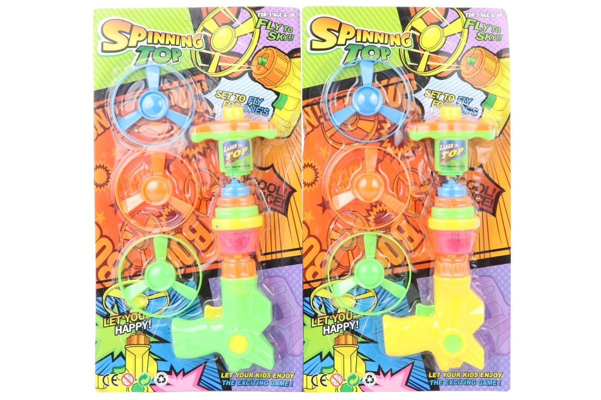 Sæt fart på legen med en batteripistol, der skyder propeller op i luften og begejstrer alle små bevægelsesglade børn. Takket være den enkle betjening lærer børn hurtigt principperne og kan nyde sikker flyveleg med propeller både inde og ude. Der medfølger også en farverig snurretop for endnu mere sjov.