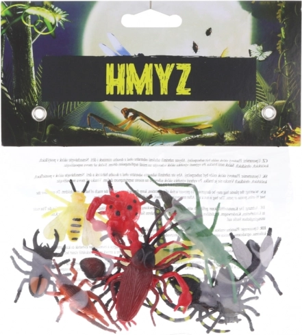 Sæt med 12 plastik-insektfigurer til børn fra 3 år. Realistiske detaljer, størrelse ca. 5 cm, kompakt emballage 15 × 17,5 × 3 cm. Perfekt til leg og læring.