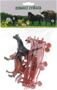 Plastikdyr – heste med indhegning. Pakken indeholder 4 heste og 4 dele til indhegningen. Pakkens mål ca. 15 × 25 × 5 cm. Dyrenes størrelse ca. 10 cm (afhængigt af type). Alder 3+