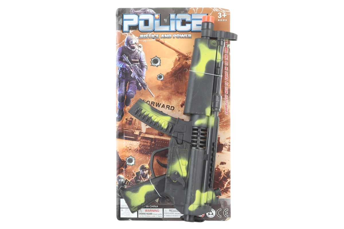 Den camouflage raslende maskinpistol vil glæde alle små fans af actionlege. Takket være det effektfulde camouflage-design og den behagelige raslelyd virker legetøjet autentisk, og børnene får mange timers sikker underholdning.