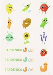 Sættet inkluderer Gardenico Kids klistermærker, som fremmer kreativitet og hjælper børn med at lære om planter på en legende måde.