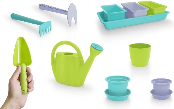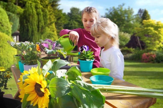 Med dette sæt kan børn lære grundlæggende havearbejde og samtidig have det sjovt udendørs ved at dyrke egne planter i farverige urtepotter.