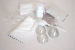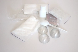 Sættet indeholder både ingredienser og redskaber til at lave 4 badebomber – tilsæt blot en smule vand, så er du klar til at gå i gang.