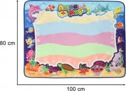 Aqua Magic vandtegningsmåtte er en fantastisk måde at støtte kreativitet og færdighedsudvikling uden behov for farver eller kridt. Fyld blot de medfølgende vandtuscher med vand og begynd at skabe – stregerne får straks farve og forsvinder igen efter noget tid, så måtten kan bruges igen og igen.