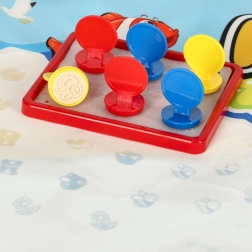 Pakken indeholder stempler, skabeloner, vandtuscher og pensel. Børn lærer former, farver og forbedrer finmotorikken.