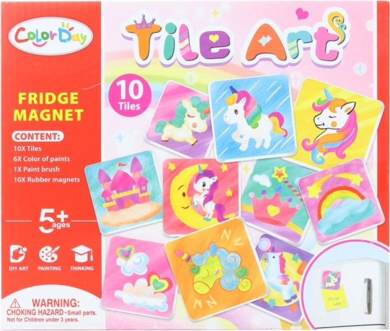Opdag et sjovt sæt til børn til fremstilling af køleskabsmagneter. Pakken indeholder 10 porcelænsplader, 10 magneter, 6 farver og en pensel – alt, hvad børn fra 5 år behøver for at skabe deres egne originale dekorationer.