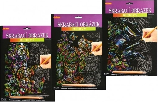 ArtLover-skrabebilleder er ideelle til at udvikle kreativitet. Papiret, der er belagt med et sort lag, skjuler en smuk regnbueeffekt, som forvandler dine tegninger til en unik visuel oplevelse. En enkel fremgangsmåde sikrer sjov for alle aldersgrupper: