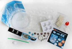 Med dette videnskabssæt opdager børn på en engagerende måde vandets og isens egenskaber samt principperne for frysning, smeltning, farvning og mekanik. Takket være de medfølgende redskaber kan man nemt og sikkert udføre mange forskellige forsøg, der styrker nysgerrighed, logisk tænkning og finmotorik.