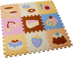 Skab et sikkert og legende hjørne til børnene med et farverigt skum-puslespil med lækkerimotiv. De enkelte dele klikker let sammen, kan udvides efter behov og kombineres frit. Måtten er blød, behagelig at røre ved og skånsom mod gulvet.