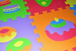 Hver af de 9 kvadratiske dele har udtagelige madbilleder, som børn kan samle og derved træne hånd-øje-koordination og logisk tænkning. Puslespillet dæmper samtidig støj og termisk isolerer mod kolde gulve – et perfekt valg til behagelig og sikker leg.