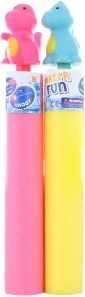 Nyd forfriskende sommerleg med den glade vandpumpe i dinosaurform. Takket være den lette skum‑plast konstruktion er den nem at håndtere selv for mindre børn – dyp blot fronten i vandet, pump, og så kan du sprøjte vand på en skive, langt væk eller under vandkampe.