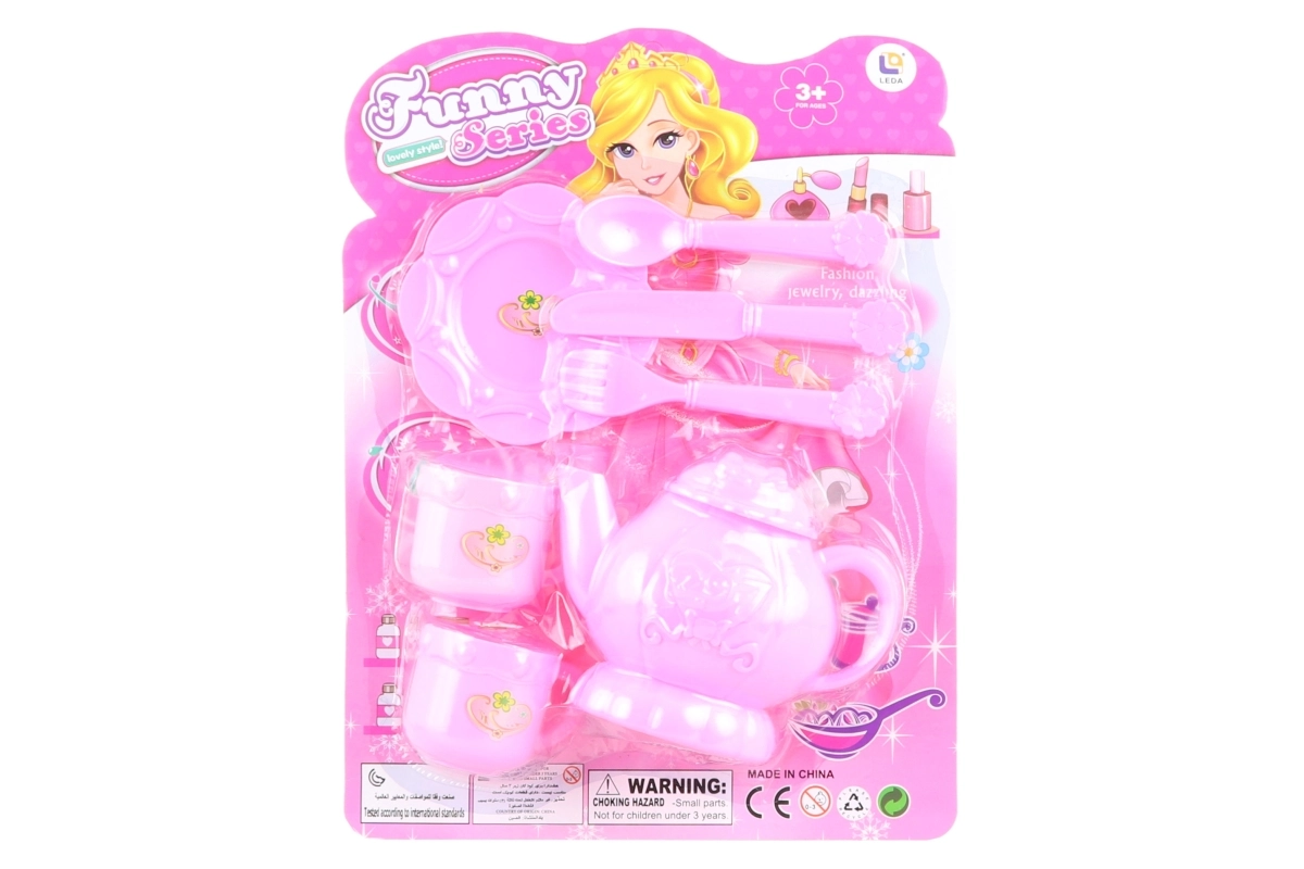 Sjovt børneservice-sæt til små kokke med alt, hvad der behøves til rolleleg i hjemmet. Indeholder 2 krus, en tallerken, en kande og bestik. Ideelt til udvikling af fantasi, finmotorik og sociale færdigheder. Anbefales fra 3 år.