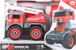 Opdag et smart legetøj, der udvikler finmotorik og fantasi: Børn samler nemt den skruebare brandbil med den medfølgende skruetrækker eller boremaskine. Motoren kan tages ud af boremaskinen, indsættes i bilen, og straks har du et fjernstyret køretøj, der kører frem og tilbage. Med lys- og lydeffekter bliver legen endnu mere realistisk.