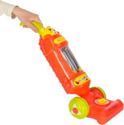 Denne hindbærrøde børne-støvsugerstick er det ideelle legetøj til små hjælpere i hjemmet. Takket være lys- og lydeffekter virker den som et ægte apparat og giver børn følelsen af at deltage i daglige gøremål. Indeni er der farvede kugler, der løfter og falder under drift, hvilket gør legen endnu mere attraktiv.
